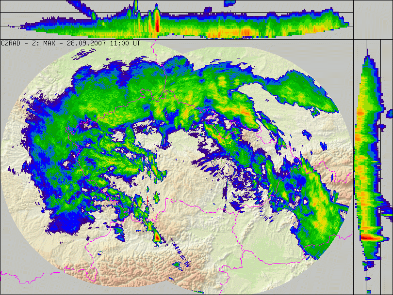 Situaci si můžete prohlédnout na této radarové animaci z období mezi 13:00-14:30 SELČ (v 10-ti minutovém kroku).